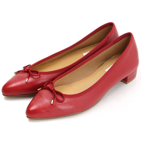すっきりとしたポインテッドトゥに、小さめリボンを添えた大人仕様のバレエシューズ。