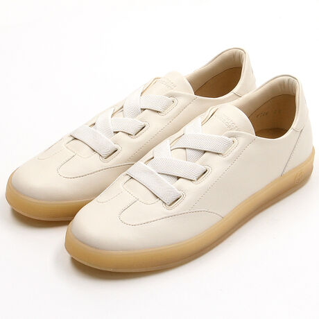 すっきりとしたレザー調アッパーは、カジュアルすぎず大人の足元にちょうどいい上品さ。