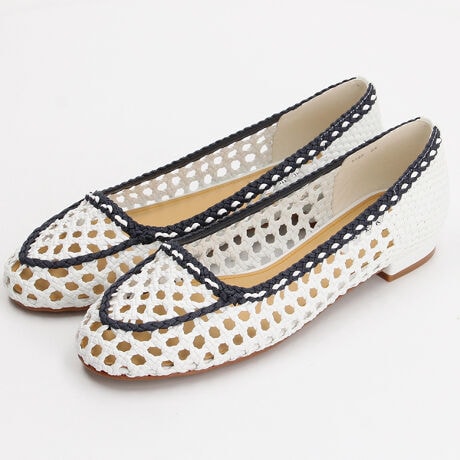 繊細な編み込みデザインが、足元に涼やかな上品さを添えるフラットシューズ。 通気性の良いメッシュアッパーが軽やかな印象をつくり、春夏の装いをさりげなく格上げします。柔らかなインソールで履き心地も快適。フラットながらもきちんと見えするシルエットで、デイリーからお出かけまで幅広く活躍します。パンツにもスカートにも合わせやすく、ワードローブに一足あると重宝するアイテムです。[型番:676566]