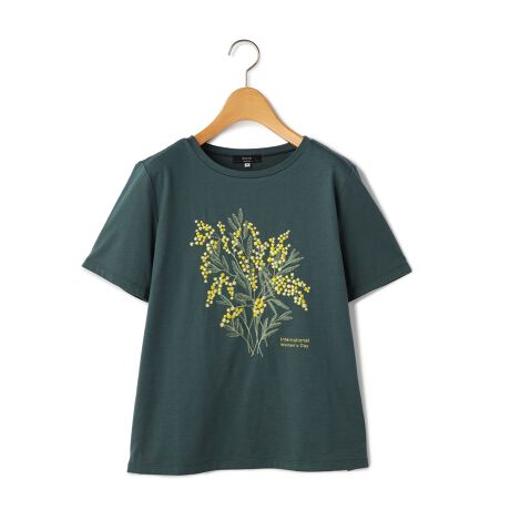 着心地の良い天竺素材で仕立てた半袖カットソー。国際女性デー(International Women’s Day)を記念してデザインされた女性の活躍を応援するアイテム。スリムフィットなシルエット。フロントには象徴であるミモザの刺繍が華やかなデザインで華やかなコーディネートが実現するアイテムです。