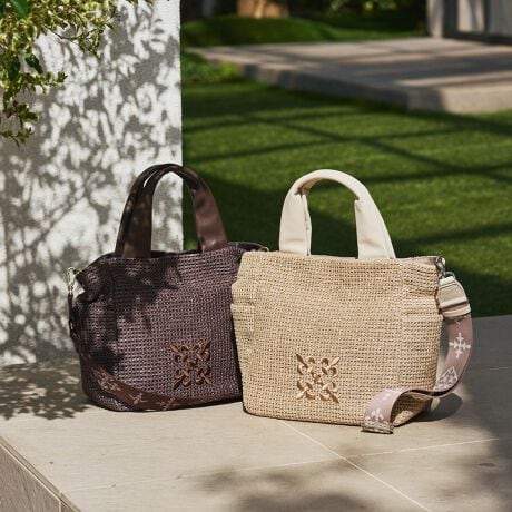 涼やかなラフィアの表情を、軽やかで扱いやすいナイロン素材で表現した2WAYトートバッグ。