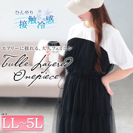【大きいサイズ】 接触冷感 ドッキング チュール ワンピース 大きいサイズ レディース ワンピース