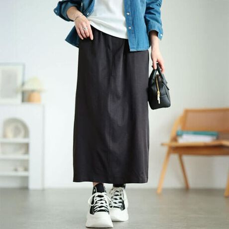 スッキリ脚長☆接触冷感ストレッチナロースカート登場!ひんやりタッチが汗ばむ季節に心地良い接触冷感素材◎ぐんっと伸びるストレッチ性でどんな動きにもしっかりフィット♪ストンっとまっすぐ落ちるIラインシルエットで体型を拾うことなくスッキリ見え◎しっかり伸びるウエスト総ゴム仕様でお腹周り楽ちんなのもオススメポイントです!