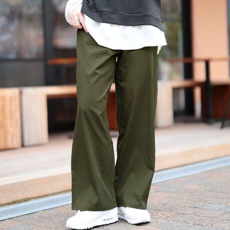 毎日に馴染む接触冷感ストレッチワイドパンツ☆大人気ちょうどいいワイドパンツから春〜秋Ver.登場!アクティブに動けるストレッチ性とひんやりタッチが心地良い接触冷感素材◎蒸し暑い季節を快適に過ごせるマストバイの一着です♪ボリュームを抑えた日常使いにちょうど良いワイド感でこなれ感はキープしつつ動きやすさ抜群☆
