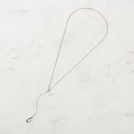 フェイクパールのパーツはマルカンでつないでいるので、アジャスタブルパーツをテールエンドまで引き挙げればワントップネックレスとしてもお使いいただけます。