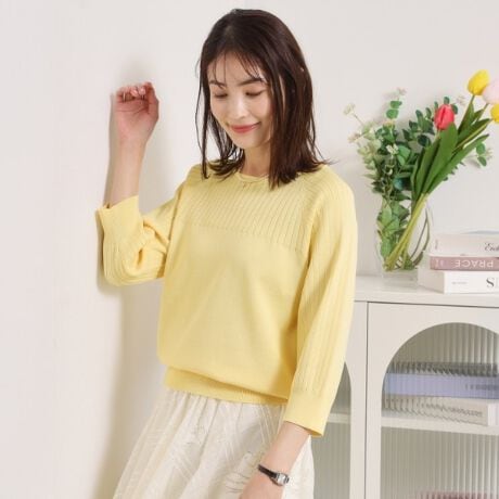 【繰り返し洗える/毛玉防止】タフニット リブ切替ニットプルオーバー