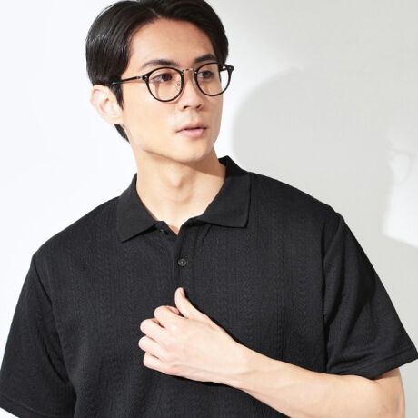 立体感のあるふくれキルトのタテ柄が特徴の半袖ポロシャツ。