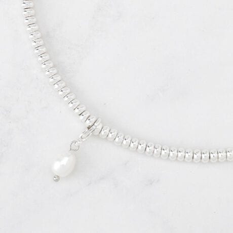 カジュアルになりがちなシルバービーズに揺れるパールが品のあるアクセントを与えてくれます。