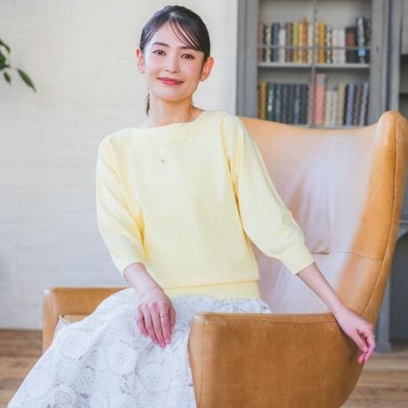 デコルテラインを美しく見せてくれるボートネックラインで顔回りもすっきり。