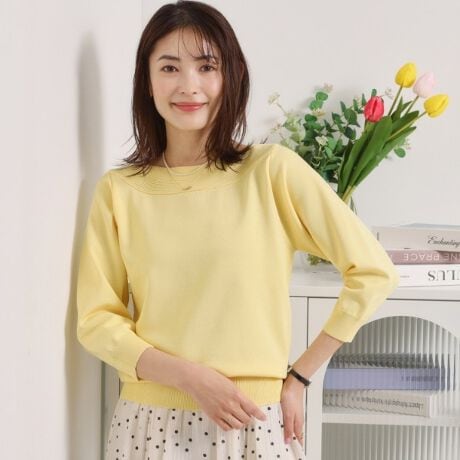 デコルテラインを美しく見せてくれるボートネックラインで顔回りもすっきり。