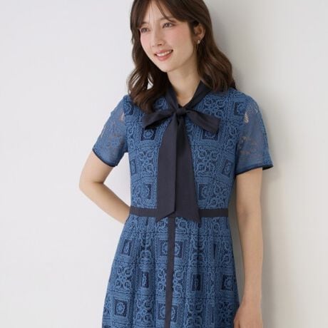 タイル調レースを使用したワンピース。