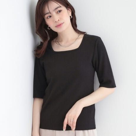 クルーネックで着ればベーシックな印象に、スクエアネックで着れば鎖骨をきれいに見せて女性らしさをプラスできます。