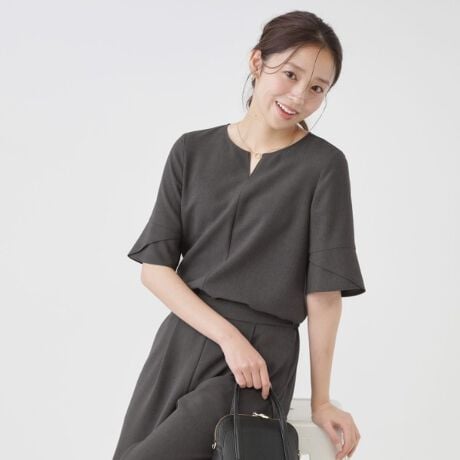 【手洗い可/日本製/セットアップ可/清涼感】キーネックブラウス