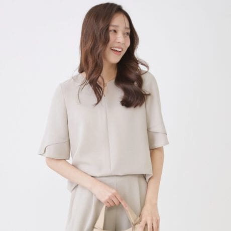 【手洗い可/日本製/セットアップ可/清涼感】キーネックブラウス