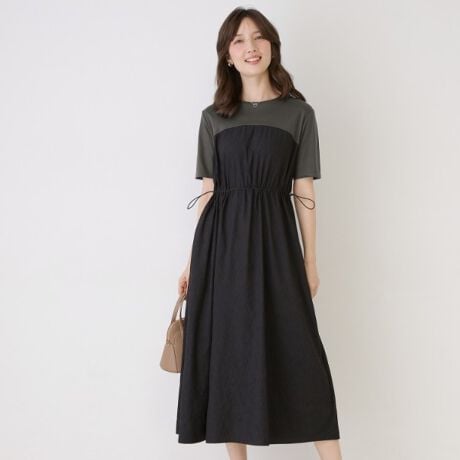 【手洗い可/裏地なし/ウエストゴム】異素材ドッキングワンピース