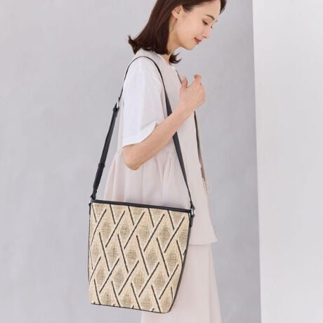 モダンな菱形パターンでコーディネートにもなじみ、軽いので様々なシーンで幅広く活躍するバッグになっています。