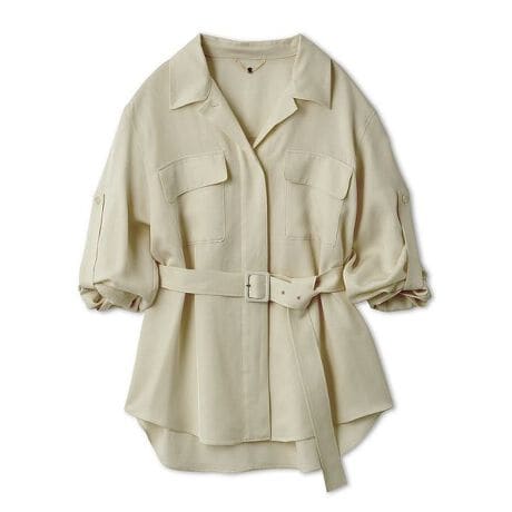 トレンドライクなサファリシャツジャケットは、女性らしく着られるデザインにこだわりました。