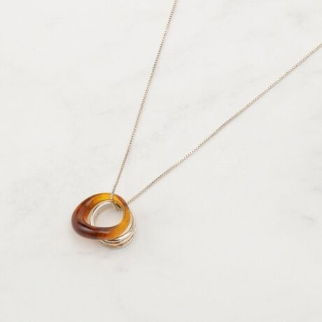 アクリルとメタルのリングを組み合わせたアジャスタブルネックレス。