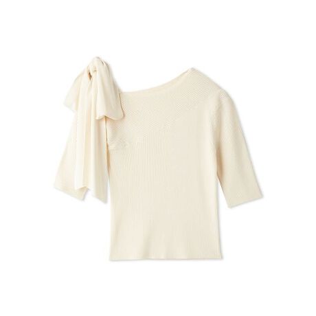 落ち感のある肩リボンがポイントのワンショルダーニット。