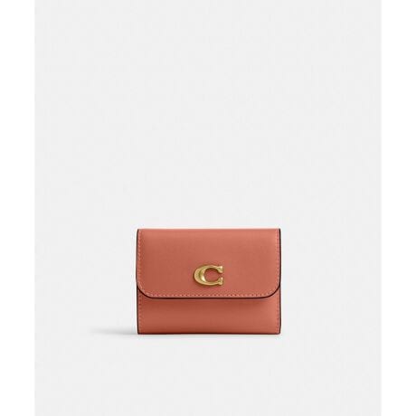 コンパクトなデザインながら整理整頓しやすい、カードホルダー付き三つ折り財布。リファインド レザーにコーチの“C”のハードウェアが目を引きます。
