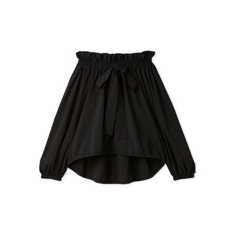 襟ぐりはゴム仕様で、オフショルとしてもワンショルとしても、またフリルカラーのブラウスとしても着用可能な3WAY。