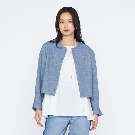 丸みのある立体的なフォルムが女性らしさを演出する、デニム調シャンブレーツイルのブルゾンです。