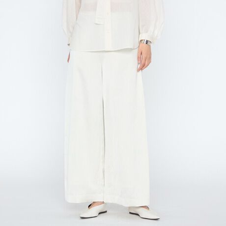 ウエストからヒップにかけてダーツですっきりと仕上げ、脇にサイドタックを入れてワイドパンツのボリューム感をコントロールし、シャープでエレガントなシルエットです。
