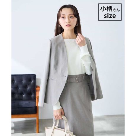 麻調素材のベーシックなノーカラージャケット。