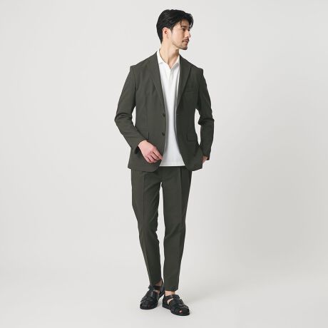 オンオフ対応でも着用いただけ、単品でも着まわせるユーティリティ性が魅力的なカジュアルセットアップスーツ。