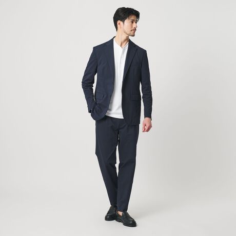 オンオフ対応でも着用いただけ、単品でも着まわせるユーティリティ性が魅力的なカジュアルセットアップスーツ。