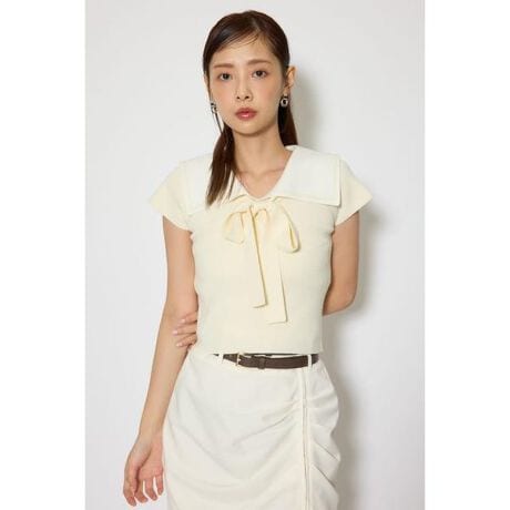 【トレンドのマリン要素を詰め込んだニットトップス】■ポイント今季再注目されているマリンらしさを演出しました。セーラーカラーのデザインと配色の縁デザインを取り入れ、濃色に合わせたリボンのボウタイをセットしたのがポイントです。スタイリッシュに着用したい時にはリボン無しにして雰囲気を変えて纏うのも◯■ディテール無地の展開と1色ボーダーの柄域を作製することで、ボーダーの方はマリン要素が強く、無地の方でコーディネートの幅を利かせられる仕様にしました。また、普通の半袖丈ではなくフレンチスリーブを取り入れ、よりマリンらしさを出したトレンディなニットトップスの完成です。■スタイリングINコーデでスッキリ見せてあげるとバランスよく着ていただけます。またミニボトムスやデニムパンツにマッチしやすく取り入れるだけで春らしいスタイリングになります。■生地透け感:なし裏 地:なし伸縮性:あり光沢感:なし厚 さ:なし■商品のお気に入り登録お気に入りアイテムの再入荷・在庫1点などの通知を受け取ることができます。[注意事項]※画像の商品はサンプルです。実際の商品と仕様、加工が若干異なる場合があります。※画像の商品は光の照射や角度、お使いのモニター環境により、実物と色味が異なる場合がございます。※着用、お取り扱いの際は、アテンションタグをご確認ください。