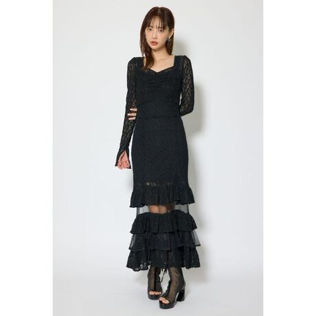 【ストレッチレースとチュールのコンビネーションワンピース】■ポイントぽこぽことした表面感が可愛らしいフラワーモチーフのレースは、ストレッチが入っていてボディーに程よくフィット。切り返しにはポイントで、ドットチュールを挟み込み奥行きを持たせました。背中のリボンはドットチュールで作成し、抜け感をプラス。裾のティアードはドットチュールとの重なりが歩くたびに美しく上品な印象に仕上げています。■ディテール膝部分にドットチュールを挟み込みシアー部分を作ることで膝位置を高く見せてくれて、足長効果も◎ウエスト部分にはコルセットデザインを採用。腰位置を高く見せてくれるので、スタイルアップ効果の高いワンピースに仕上がりました。キャミのインナーワンピースもセットなのも嬉しいポイントです。■スタイリングジャケットと合わせてデートスタイルも◎足元にウエスタンブーツを持ってくることでトレンド感のあるコーデが完成します。■生地透け感:若干あり裏 地:あり伸縮性:あり光沢感:なし厚 さ:薄手■商品のお気に入り登録お気に入りアイテムの再入荷・在庫1点などの通知を受け取ることができます。[注意事項]※画像の商品はサンプルです。実際の商品と仕様、加工が若干異なる場合があります。※画像の商品は光の照射や角度、お使いのモニター環境により、実物と色味が異なる場合がございます。※着用、お取り扱いの際は、アテンションタグをご確認ください。