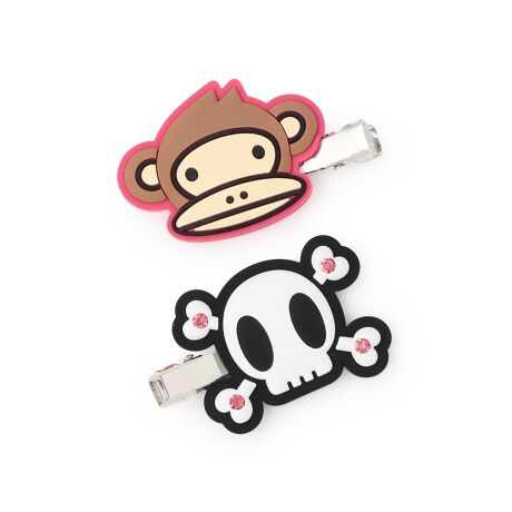 キャラクターのお顔と個性的なモチーフをあしらった前髪クリップのセットです。