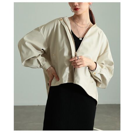 【ジャケット】 レディース アウター 合成皮革 ノーカラー ブルゾン 羽織り きれいめ 上品 春
