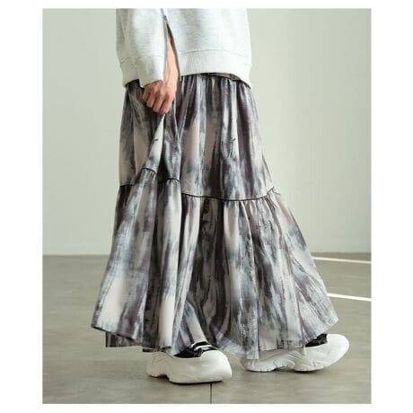 やわらかなニュアンス柄が目を惹くティアードスカート。段ごとに広がるシルエットが軽やかな動きを生み、コーデに自然な華やぎを添えます。シンプルなトップス合わせでもしっかり映える一枚です☆