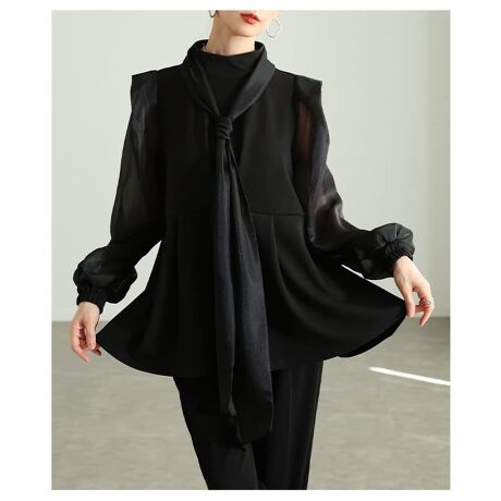 タイ付きデザインが目を惹くペプラムブラウス。ふんわり広がるシルエットで女性らしいメリハリを演出します。「almam-203124」のパンツと合わせれば、きちんと感のあるセットアップスタイルも楽しめる一枚です☆
