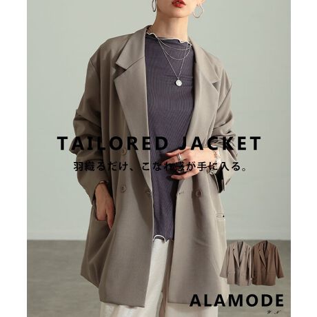 きちんと感をしっかり演出してくれるテーラードジャケット。ダブルボタン仕様で、羽織るだけでぐっと大人っぽい印象に。オンにもオフにも使いやすく、ワードローブに一枚あると頼れる存在です☆