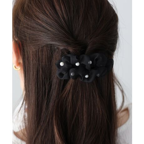 ボリューム感のあるオーガンジー生地に上品な光沢のパールが華やかさを添えるヘアピン。