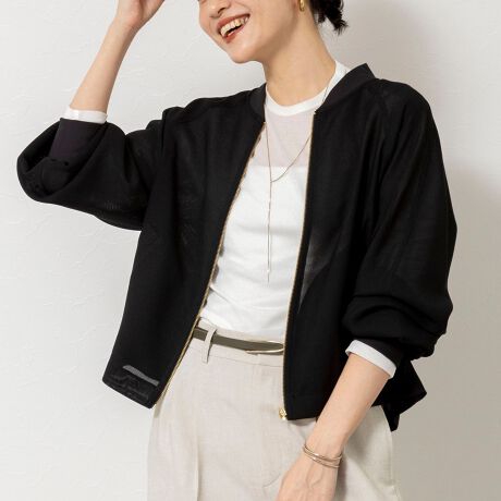 ウォッシャブルカラミメッシュジップアップブルゾン