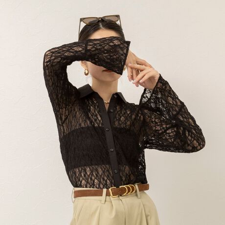 ・繊細なレース素材が目を引くシアーシャツ