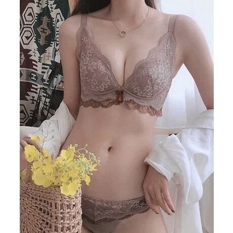 たっぷり繊細な花柄レースが可愛らしい、ブラ&ショーツの2点セット。