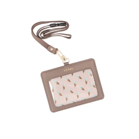 【nofesのIDホルダー】落ち着いた合皮素材にさりげないロゴがオフィスコーデを品よく格上げしてくれる横型IDホルダー。【カード仕分けもスマートに】窓付きのID表示面に加え裏面にもカードポケットを搭載で社員証と交通系ICを分けて持てる便利さ◎【裏地のおしゃれが楽しい】開くたびに目に入る柄入りポリエステルの裏地がさりげないアクセントになる大人かわいい仕上がり♪【ナスカンでバッグにもON】ストラップを外してナスカンでバッグに取り付ければリール風にも使える2WAYの気軽さ♪【安全パーツで安心設計】強い力が加わるとパッと外れる安全着脱パーツ付きでエレベーターやドア周りのトラブルを防止〇