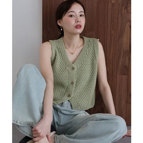 ざっくりとした表情豊かな編地が、アーバンな抜け感を演出するニットベスト。