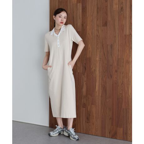 Vラインのスキッパー襟がクリーンで都会的なリズムを刻むポロワンピース。
