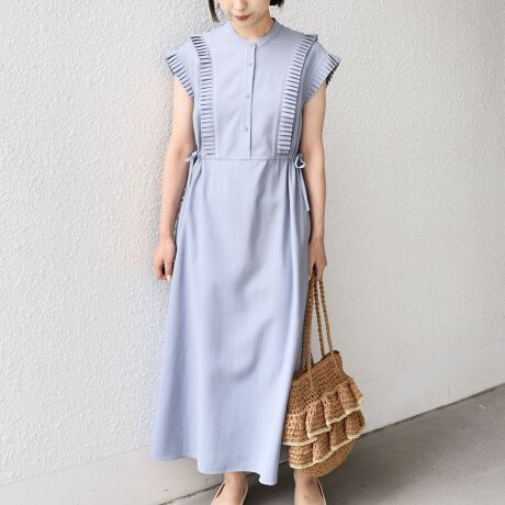 ヨークと袖口にあしらった繊細なプリーツが、上品な女性らしさを引き立てる一着。