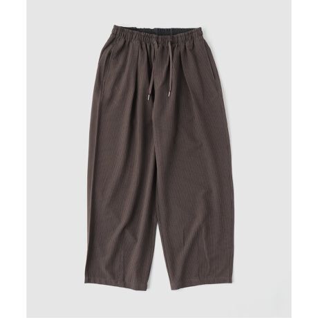 細かなピンストライプが上品な印象を与えるワイドストレートパンツ。