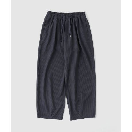 細かなピンストライプが上品な印象を与えるワイドストレートパンツ。