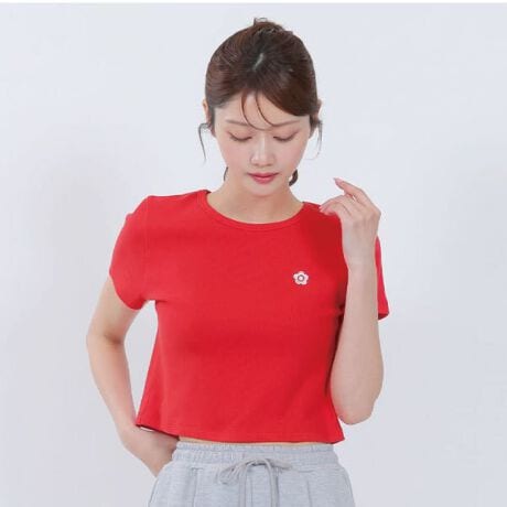 リブ生地で仕上げたクロップド丈のTシャツ。