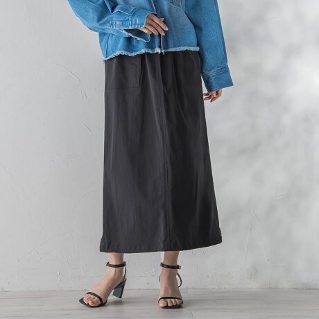 後ろスリット入りで歩きやすく、春の軽やかな装いにぴったりの一枚です。
