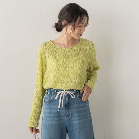 ポコポコとした凹凸感が魅力のフリルジャカードトップス。